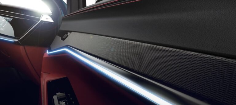 Przód pojazdu jest artystycznie akcentowany przez przeprojektowaną, siedmioszczelinową osłonę chłodnicy, przekształcając funkcjonalność oddychania w widzenie. Nie jest już potrzebna do przepływu powietrza i chłodzenia, zamknięta osłona teraz oświetla pole widzenia przy zbliżaniu się do pojazdu. Nowe, uderzające ambientowe oświetlenie inspirowane nowoczesną architekturą dostarcza wyraźny wygląd nawet z daleka.