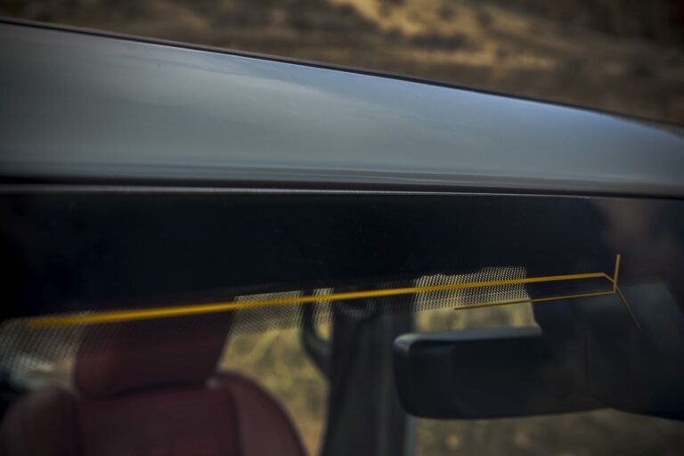 Nowa antena stealth gotowa do terenu, zintegrowana w przedniej szybie, zastępuje poprzednią stalową antenę masztową, podkreślając wygląd Wranglera i eliminując zaczepy na gałęziach czy krzakach.