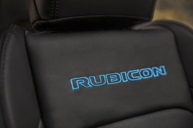 W środku w porównaniu z poprzednikiem wprowadzono ogromne ulepszenia. Na szczycie centralnego panelu umieszczono 12-calowy ekran dotykowy dla systemu multimedialnego Uconnect 5. Jeep skupił się również na komforcie klientów, dodając fotele elektryczne. Wraz z nową gamą, Rubicon otrzymał także adaptacyjny tempomat, poduszki powietrzne boczne oraz system monitorowania martwego pola. Na koniec, ta wersja miała niebieskie litery Rubicon wyhaftowane na przednich częściach oparć foteli.