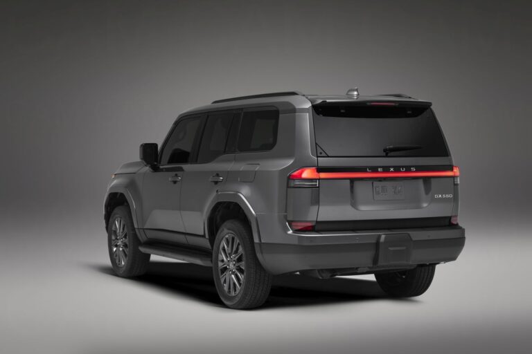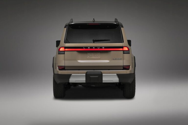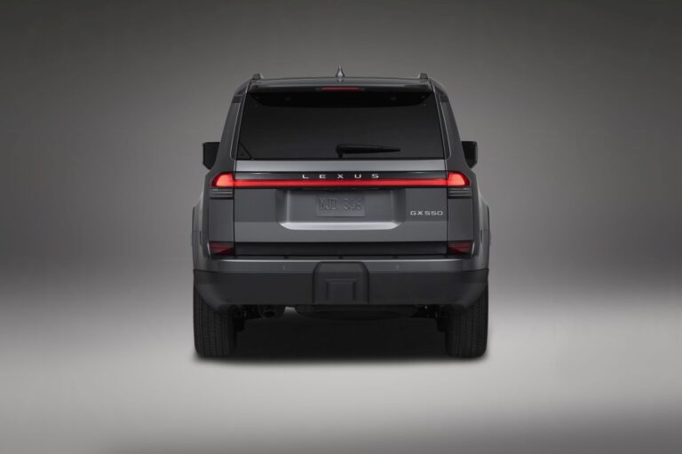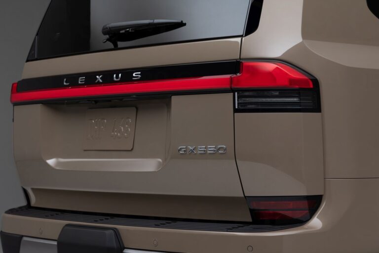 Z tyłu kwadratowa, agresywna sylwetka utrzymuje charakterystyczny zintegrowany pas świetlny w kształcie litery L. Zaktualizowane logo LEXUS to kontynuacja designu Nowego Rozdziału, który pierwotnie wprowadzono w modelu NX 2022. Na podstawie opinii klientów, nowy GX będzie posiadał standardowe zasilane tylne drzwi liftback (pierwszy raz w GX) z oknem wysuwanym oraz dostępnym czujnikiem do bezdotykowego otwierania.