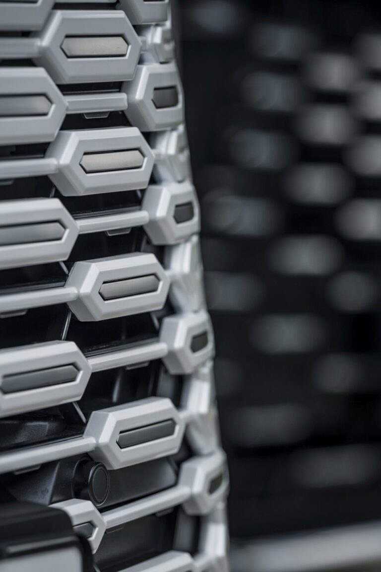 Przestronna kabina oferuje maksymalną przestrzeń dla pasażerów, zapewniając minimalne zakłócenia w jednorodnej formie, podczas gdy nacisk na przednie i tylne koła evokuje doskonałą wydajność jazdy i komfort podróży.