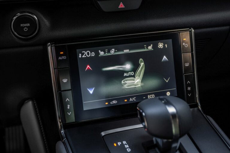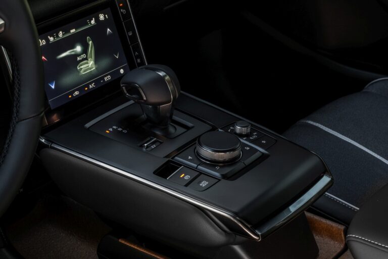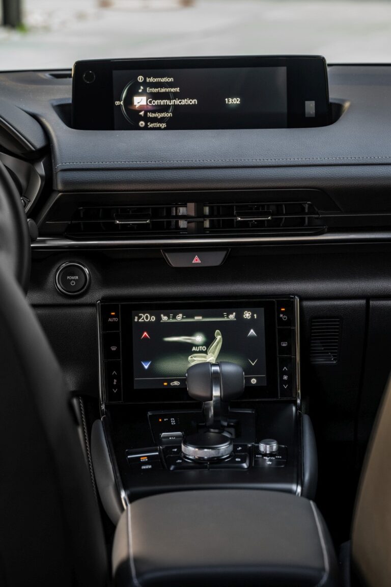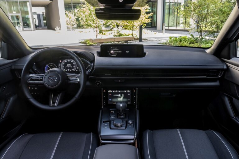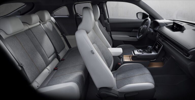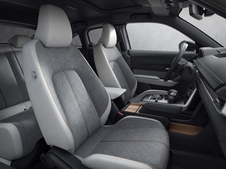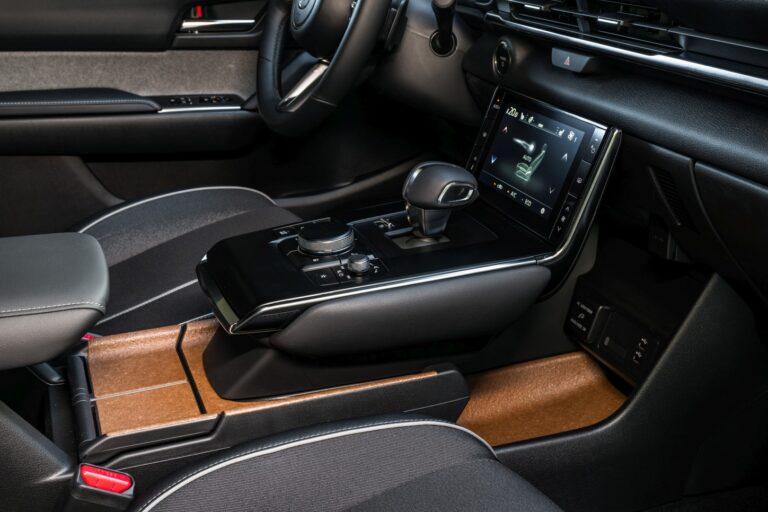 Wewnątrz powita nas kabina w większości wykonana z materiałów włóknistych. Na przykład tapicerka drzwi pokryta jest włóknami z recyklingowanych butelek plastikowych, podczas gdy części wykończenia środkowej konsoli mają fakturę nazwaną Heritage Cork, materiał pozyskiwany z kory drzew bez ich wycinania. Po raz pierwszy w produkcyjnym modelu Mazdy zainstalowano 7-calowy panel dotykowy do sterowania ogrzewaniem, co zapewnia lepszą kontrolę.