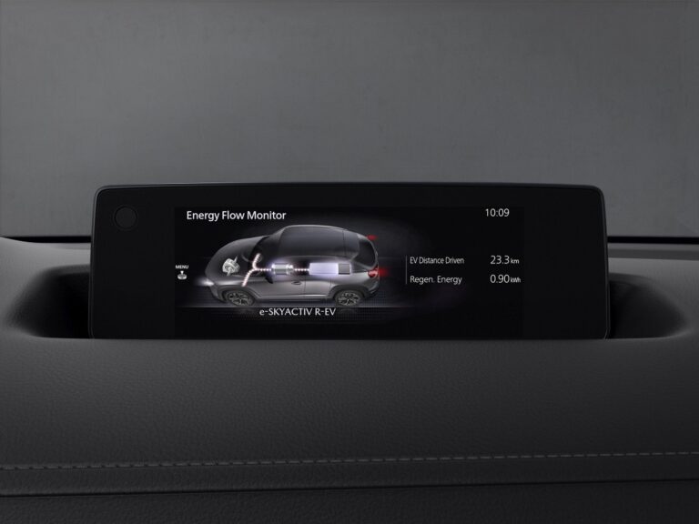 Z ponad pięćdziesięcioletnim doświadczeniem w rozwoju silników rotacyjnych, Mazda wybrała jednostkę rotacyjną do tej aplikacji ze względu na jej unikalną zdolność do wytwarzania wymaganej mocy z małej, lekkiej i łatwej do umiejscowienia jednostki. Silnik rotacyjny jest schludnie umieszczony obok generatora i silnika o dużej mocy w komorze silnikowej. Połączenie akumulatora o pojemności 17,8 kWh oraz zbiornika paliwa o pojemności 50 litrów tworzy unikalny hybrydowy model typu plug-in o elastycznym zasięgu wynoszącym ponad 373 mil, przy czym emisja CO2 na poziomie zaledwie 21 g/km według WLTP zapewnia najlepsze w swojej klasie wyniki ekologiczne.