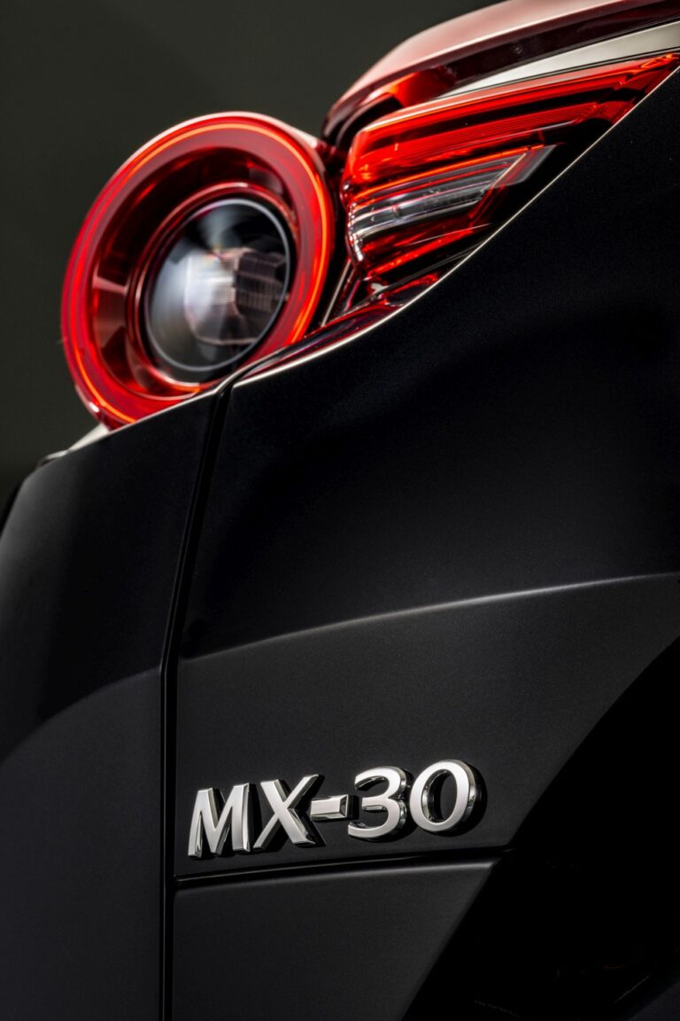 Wszystkie wersje Mazda MX-30 e-Skyactiv R-EV mają wytłoczone logo rotacyjne na przednich błotnikach oraz logo e-Skyactiv R-EV na klapie bagażnika. Unikalne koła odróżniają model R-EV: Prime-Line z ciemnoszarym wykończeniem oraz Exclusive-Line, Makoto i Edition R z wykończeniem czarnym ze szlifu diamentowego. Ceny modeli R-EV w wersji Prime-Line i Exclusive-Line zaczynają się od 31,250 funtów – są one wycenione identycznie jak wersja BEV, co daje klientom łatwość wyboru, zachowując równowagę cenową. Modele Makoto R-EV mają niewielką premię cenową wynoszącą 450 funtów w porównaniu do wersji w pełni elektrycznej, a na szczycie oferty MX-30 znajduje się wyłącznie wersja Edition R R-EV – wyceniona na 37,950 funtów, ograniczona do zaledwie 400 sztuk w Wielkiej Brytanii.