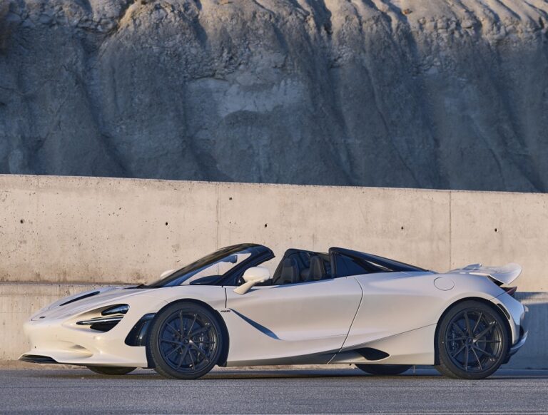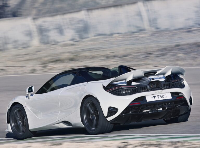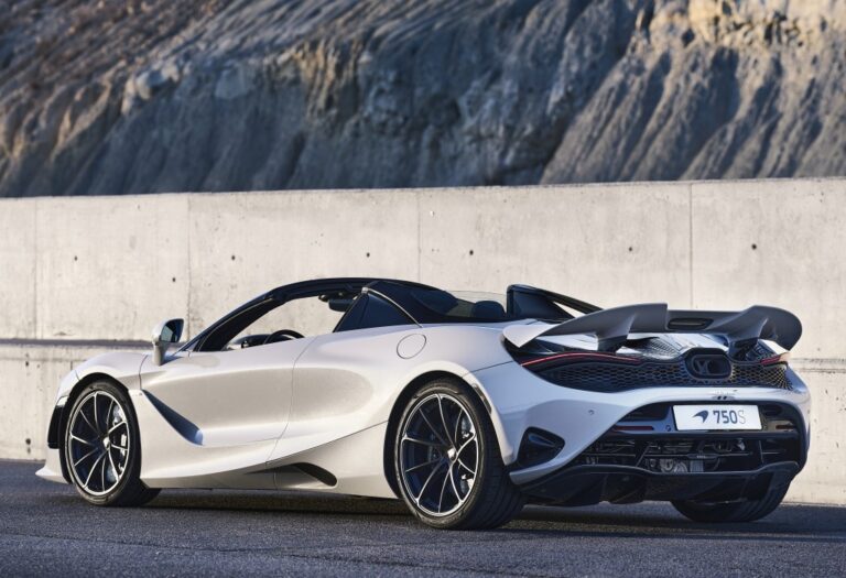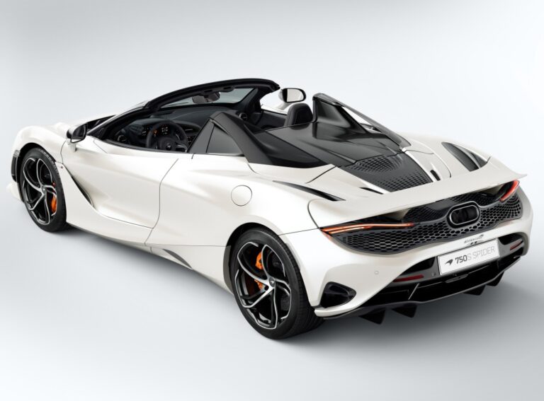 Po ponad czterech dekadach monocoque w sercu 750S – mimo że jest technologicznie odległy od MP4/1 – zachowuje wszystkie korzyści, jakie przynosi zaawansowana konstrukcja z włókna węglowego. Dihedralne drzwi coupe 750S otwierają się dramatycznie do góry, zabierając ze sobą część dachu, ponieważ górna część monocoque może bez trudu wspierać tak szerokie otwarcie swojej struktury. Ta wewnętrzna wytrzymałość to ten sam powód, dla którego 750S Spider – który ma swoje własne specjalne drzwi – nie potrzebuje dodatkowego wzmocnienia strukturalnego do wbudowania dachu kabrioletu.