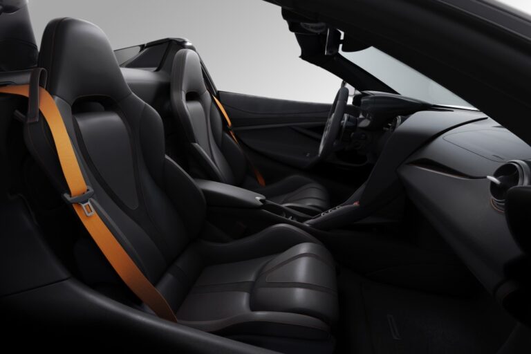 Standardowo zamontowane siedzenia wyścigowe z włókna węglowego są łącznie o 17,5 kg lżejsze od sportowych siedzeń, które wcześniej były standardowe w 720S. Tam, gdzie lokalne przepisy rynku pozwalają, fotel pasażera jest na stałe montowany jako standard, ale można go również wyposażyć w regulowane szyny, jeśli zajdzie taka potrzeba. Nowa ultra-lekka felga o dziesięciu szprychach jest najlżejszą, jaką kiedykolwiek zamontowano w standardzie w seryjnym supersamochodzie McLarena i przynosi znaczną redukcję wagi o 13,8 kg w porównaniu do 720S.