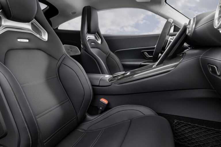 Jednym z wielu atutów wnętrza jest rzeźbiarski design standardowych, elektrycznie regulowanych foteli sportowych AMG z zintegrowanymi zagłówkami. Doskonała ergonomia oraz progresywne wzory szwów i stębnowania dopełniają symbiozę wysokiej technologii, wydajności i luksusu. Duży wybór różnych pokryć odzwierciedla również asortyment od komfortu po wydajność. Jednobarwna i dwubarwna skóra Nappa znajdują się wśród opcji, podobnie jak szczególnie finezyjna tapicerka MANUFAKTUR Nappa z pikowaniem w diamenty oraz sportowa kombinacja skóry Nappa z mikrofibry MICROCUT i kontrastowymi stębnowaniami w kolorze żółtym lub czerwonym, obok trzech programów masażu dla doskonałego komfortu w czasie długich podróży. Pakiet ENERGIZING Plus łączy między innymi funkcje foteli, takie jak masaż i różne nastroje świetlne, by stworzyć stymulujące lub relaksujące wnętrza.