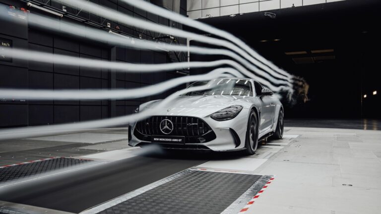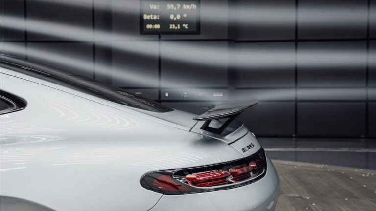 Kluczowym obszarem rozwoju nowego AMG GT Coupé była wysoka efektywność aerodynamiczna, a dokładniej: doskonale wyważony stosunek między niskim oporem powietrza a zmniejszonym unoszeniem. W tym sportowym coupé skorzystano z rozbudowanych aktywnych elementów aerodynamicznych z przodu i z tyłu. Wszystkie elementy optymalizujące przepływ są płynnie zintegrowane w designie zewnętrznym. Aerodynamika AMG GT Coupé spełnia złożone wymagania dotyczące stabilności jazdy, oporu powietrza, chłodzenia i hałasu wiatru. Równowaga aerodynamiczna umożliwia neutralizację krytycznych sytuacji podczas jazdy, takich jak nagłe manewry unikania przy dużych prędkościach.