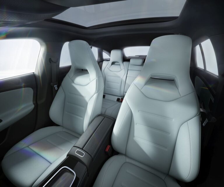 Wnętrze AMG Street Style Edition również ma charakterystyczny design: Fotel AMG Performance w czarnej mikrofałdzie MICROCUT zdobiony jest szwami i akcentami w jaskrawej pomarańczy. Etykieta „CLA 45 S”, również w pomarańczowym kolorze, przenosi emblem marki do wnętrza. Kierownica AMG Performance w skórze/mikrofali MICROCUT oraz elementy wykończeniowe AMG w aluminium (o tym samym wzorze co zewnętrzna folia) dodają kolejne akcenty do wnętrza. Dbałość o szczegóły podkreśla również deska rozdzielcza z kontrastowymi pomarańczowymi szwami oraz progi drzwiowe AMG z napisem „AMG”, czarną wymienną pokrywą oraz oświetleniem charakterystycznym dla edycji w kolorze czerwonym. Dywaniki AMG z napisem „Street Style Edition” i pomarańczowymi szwami dopełniają wysokiej jakości wykończenie wnętrza.