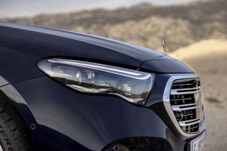 Widok z boku szczególnie dobrze podkreśla harmonijne proporcje i charakterystyczny design „cab-backward”. Oferowane na życzenie chowane klamki drzwi typowe dla luksusowych modeli Mercedes-Benz są dostępne jako opcja. Rozszerzają się elektrycznie, gdy kierowca zbliża się lub dotyka zewnętrznej powierzchni klamki.