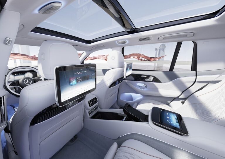 Jednak to wnętrze GLS 600 robiło największe wrażenie. Kabina wykończona skórą miała cztery wygodne fotele. Te umieszczone z tyłu były również regulowane i oddzielone wysokim tunelem środkowym, który sięgał aż do deski rozdzielczej. Dodatkowo pasażerowie z tyłu mogli cieszyć się nie dwoma, ale trzema ekranami dotykowymi. Dwa były zamontowane na oparciach przednich siedzeń, a jeden między nimi. Wszystko było po to, by zapewnić komfort tym pasażerom w trakcie długich podróży.