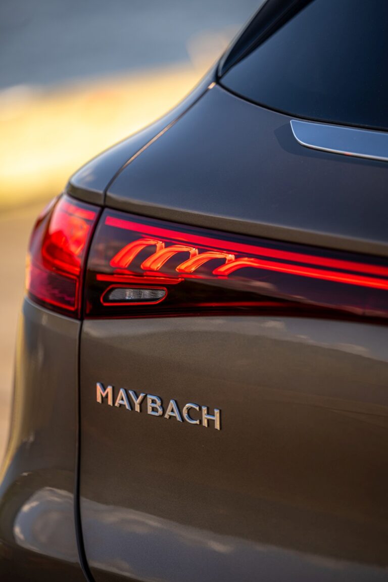 Mercedes-Maybach wzbogaca dynamiczny design EQS SUV z Mercedes-EQ o ekskluzywne elementy, które nadają mu unikalny charakter. Gwiazda Mercedesa dumnie zdobi maskę, definiując status. Przód charakteryzuje się typowym dla marki czarnym panelem z pionowymi, chromowanymi paskami w trójwymiarowym wyglądzie. Duży czarny panel jest po raz pierwszy gładko zamknięty. Element high-tech dla czujników radarowych jest w pełni zintegrowany i już niewidoczny. Chromowane, filigranowe listwy można znaleźć na wlocie powietrza w zderzaku. Klasyczne litery MAYBACH są dyskretnie wkomponowane w chromowaną listwę dekoracyjną, która tworzy jedność z ciągłym paskiem świetlnym standardowych reflektorów DIGITAL LIGHT. Wzór Maybacha z kilkoma małymi emblematami marki można również znaleźć w częściach wykończenia bocznego zderzaka. DIGITAL LIGHT wita i żegna kierowcę specjalnym pokazem świateł. Jako dodatkowe powitanie, animowana projekcja wzoru Maybacha świeci w wszystkich czterech drzwiach.