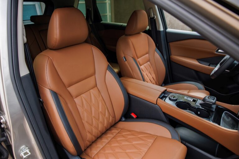 Projektanci jeszcze bardziej podkreślili premium wygląd i odczucie Rogue Platinum. Błyszczące czarne elementy na błotnikach, dolne wykończenie zewnętrzne i przedni zderzak, a także nowy design felg o średnicy 19 cali nadają Rogue bardziej luksusowy wygląd zewnętrzny, podczas gdy nowa dostępna tapicerka ze skóry w kolorze kasztanowym ma bogatszy, ciemniejszy odcień.