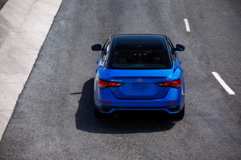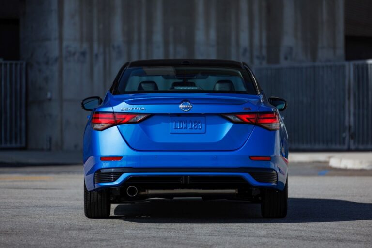Z tyłu, nowy graficzny design dolnej części nadwozia sprawia, że Nissan Sentra wygląda na niższy i szerszy. Kolor przeszyć w wersji SR został dostosowany do czerwono-pomarańczowego, który lepiej pasuje do kolorystyki znanej z Altima SR oraz Frontier PRO-X i PRO-4X.