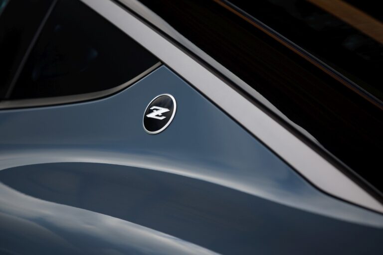 Ponad linią okien, Z NISMO wyróżnia się od innych wersji ciemnoszarym metalicznym kolorem charakterystycznego elementu stylizacji katana-blade. Dodatkowo, posiada malowany na czarno dach oraz błyszczące czarne 19-calowe koła RAYS®.