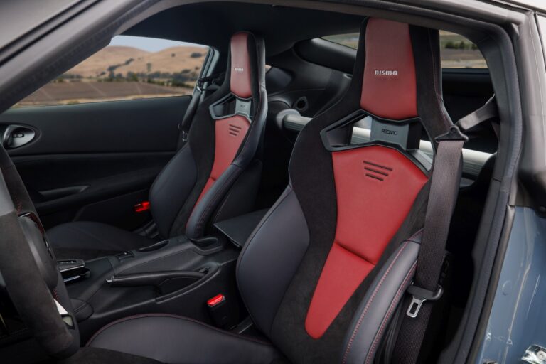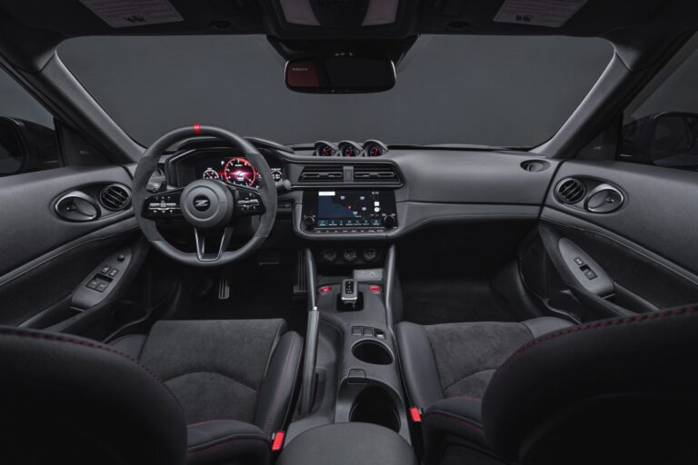 Aby zapewnić stabilność kierowcy i pasażera, Z NISMO wyposażono w fotele Recaro o połączeniu skóry i Alcantary, z czerwonym środkowym paskiem oraz logotypami NISMO na zagłówkach. Nowa kierownica ma skórzane i alcantarowe wykończenie oraz sportowy, inspirowany wyścigami czerwony znacznik na godz. 12.