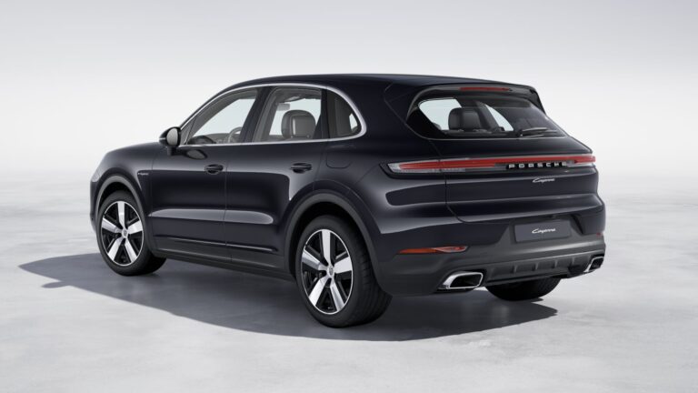 Nowy Cayenne charakteryzuje się również całkowicie przeprojektowanym wzorem tyłu. Jak w Coupé, uchwyt na tablicę rejestracyjną znajduje się teraz w zderzaku tylnym w standardowym SUV Cayenne, a uchwyt na klapie bagażnika również został usunięty. Całkowita taśma LED, w tym tylne światła i kierunkowskazy, wykonana jest z trójwymiarowo ukształtowanego szkła, rozciąga się wzdłuż całego obszaru tyłu jak łuk i tworzy niezapomniany sygnaturę świetlną w nocy. Logo PORSCHE również zyskało trójwymiarową, samodzielną formę.