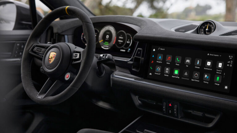 Nowy Porsche Cayenne Turbo E-Hybrid korzysta również ze wszystkich nowych funkcji wprowadzonych w modelu zmodernizowanym na początku 2023 roku. Należą do nich nowe kokpity z całkowicie cyfrowym zestawem wskaźników w zakrzywionym i wolnostojącym designie z różnymi opcjami wyświetlania, przeprojektowana konsola centralna oraz opcjonalny wyświetlacz dla pasażera. Innowacyjne, wysokorozdzielcze reflektory LED HD-Matrix, standardowe w nowych modelach Turbo E-Hybrid, zapewniają większy komfort i bezpieczeństwo w nocy.