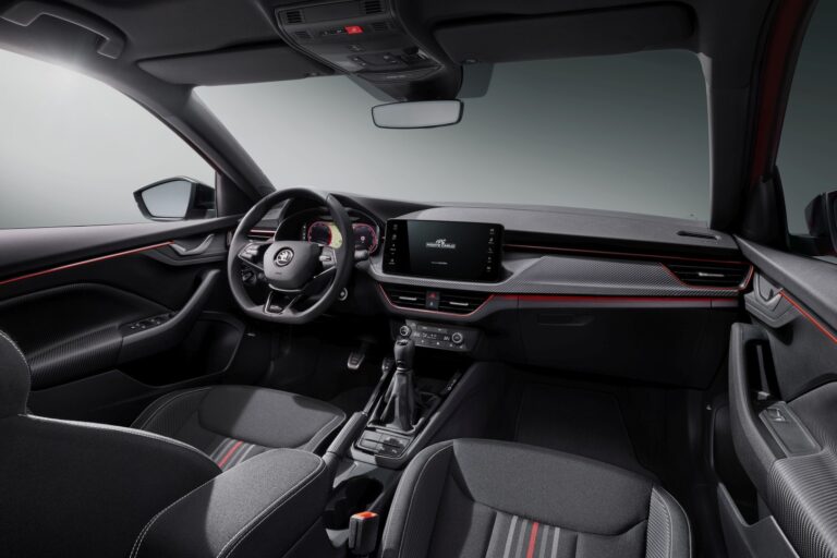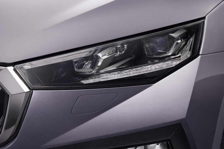 Škoda zaprezentowała teraz Scali i Kamiq z szerokimi aktualizacjami. Scala wygląda teraz jeszcze bardziej dynamicznie, przywodząc na myśl koncepcyjny model Vision RS z odświeżoną kratką, smuklejszymi reflektorami, przeprojektowanymi zderzakami z przodu i z tyłu oraz wyrazistymi kurtynami powietrznymi. Kamiq otrzymał teraz większą, bardziej prostokątną kratkę, a nowe zderzaki z efektownymi dyfuzorami nadają mu bardziej wyrazisty SUV-owy charakter. Co więcej, charakterystyczne podzielone reflektory Kamiqa mają nowe proporcje: górny element oświetleniowy jest jeszcze smuklejszy, podczas gdy dolny zwiększył swoje rozmiary. Został zaprojektowany tak, aby pomieścić opcjonalne reflektory TOP LED Matrix z charakterystycznymi heksagonalnymi modułami Matrix, dostępne po raz pierwszy zarówno dla Kamiqa, jak i Scali. W modelu hatchback, kryształowe moduły LED zaprojektowano tak, aby przypominały lśniące małe bloki lodu lub kamieni szlachetnych.