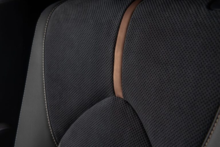 Przemyślany i przestronny design wewnętrzny również kontynuuje. Miękko wykończona deska rozdzielcza unosi się nad dostępna ozdobionymi drewnem elementami, które przechodzą do obramowania drzwi, z funkcjonalnym kształtem tacy, który jest bezszwowo zintegrowany między nimi. Dodatkowo, umieszczony nisko w centralnej części znajduje się solidna konsola, która sprawia wrażenie starannie wykonanej kanapy, wyrażając komfortową przestrzeń przypominającą salon. Forma górnej części deski rozdzielczej przechodzi w obramowanie drzwi, tworząc szeroką przestrzeń, podczas gdy dolna część deski rozdzielczej ma niezależne podłokietniki po stronie kierowcy i pasażera, umożliwiające korzystanie niezależnie od tego, czy pokrywa konsoli jest otwarta czy zamknięta. Akcenty ozdobne sprawiają, że wnętrze przypomina nowoczesne dzieło sztuki wyrzeźbione z jednego kawałka drewna. Wysokiej jakości skórzane szwy wyrażają nowoczesną i wyrafinowaną elegancję.