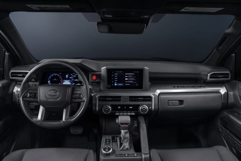 Całkowicie nowa Toyota Tacoma jest wypełniona najnowszą technologią oraz ekranami informacyjnymi, które wprowadzają znaczące aktualizacje do kabiny. Nowy 8-calowy lub dostępny 14-calowy ekran multimedialny wyświetla najnowszy system Audio Multimedia Toyoty, który zadebiutował w modelu Tundra 2022 i został zaprojektowany oraz opracowany przez zespół Connected Technologies Toyoty z siedzibą w Teksasie. System obsługuje bezprzewodową kompatybilność Apple CarPlay® i Android Auto™, i dobrze współpracuje z dostępną bezprzewodową stacją ładującą Qi o zwiększonej mocy wyjściowej. Złącze USB-C do danych i ładowania jest zintegrowane z prawej strony wyświetlacza, a podwójne porty USB-C są dostępne w pierwszym rzędzie i dla pasażerów z tyłu. 12.3-calowy cyfrowy zestaw wskaźników z czterema różnymi stylami jest standardem w wyższych wersjach, podczas gdy 7-calowy zestaw wskaźników jest standardem w niższych wersjach.