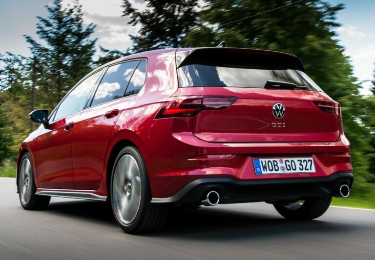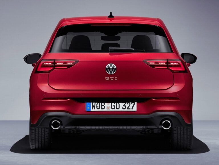 Nowy Golf ma mocną sekcję barkową i uderzający design tylnej części. Korzystają na tym również nowe, sportowe modele, które są standardowo wyposażone w LED-owe zespoły tylnych świateł. Napisy GTI, GTE lub GTD są teraz umieszczone centralnie pod emblematem Volkswagena, a nie po stronie kierowcy, jak to było wcześniej. Spojler dachowy wydłuża się ku tyłowi i łączy z czarnym wykończeniem wokół tylnej szyby, co sprawia, że Golf GTI, GTE i GTD wydają się jeszcze bardziej płaskie niż mniej mocne modele. Na dole sportowy dyfuzor odróżnia nowe wersje od innych wersji serii. Różnią się one również końcówkami układów wydechowych – GTI ma jedną końcówkę po lewej i jedną po prawej, GTD ma podwójną końcówkę po lewej, a GTE nie ma w ogóle widocznej końcówki.
