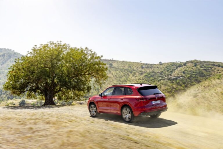 W zależności od wyposażenia, nowe felgi w wzorach Coventry (19 cali, standard w R-Line), Braga (20 cali, standard w R), Napoli (21 cale) i Leeds (21 cale) od razu przyciągają uwagę w profilu bocznym. W ramach funkcji oświetlenia otoczenia, logo Volkswagena lub symbol R (Touareg R eHybrid) są teraz projektowane na drogę z obudów lusterka zewnętrznego, gdy VW Touareg jest otwarty i zaparkowany w ciemności.