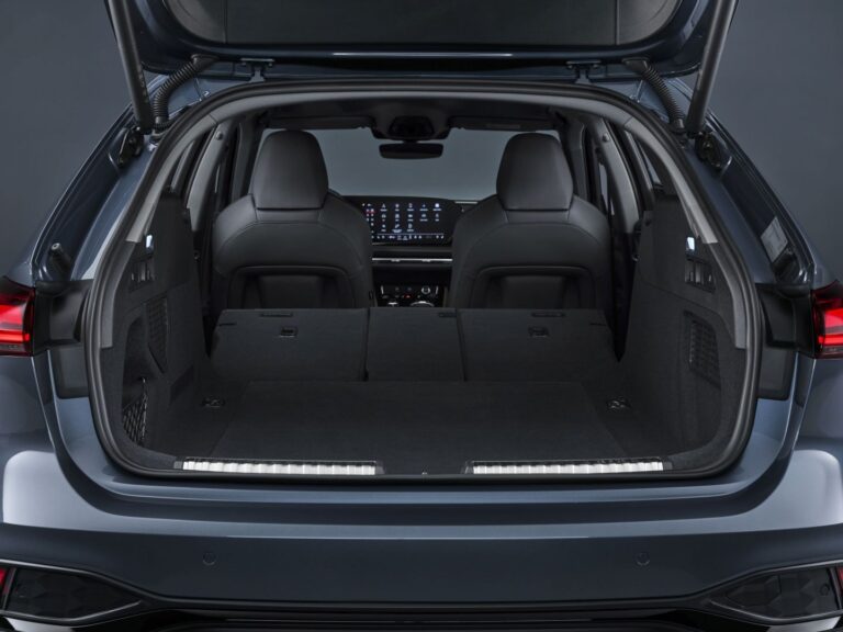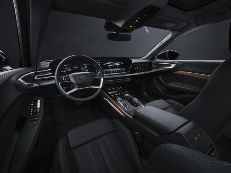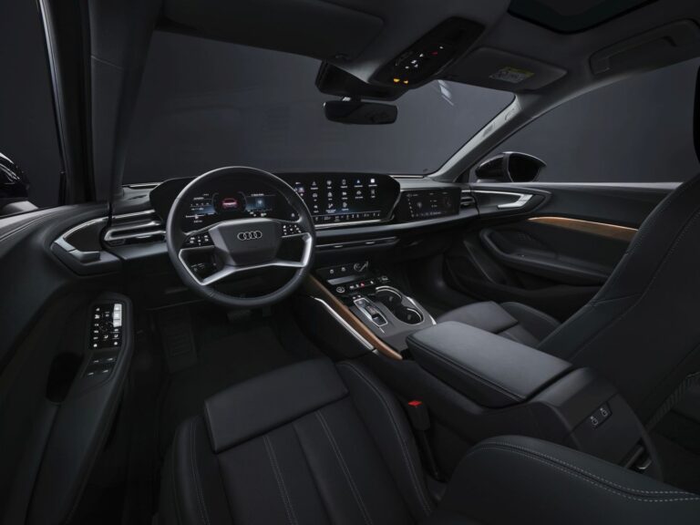 Wnętrze kabiny Audi A5 Avant 2025 wyposażone było w parę wysokich, bocznych foteli oddzielonych szerokim podłokietnikiem, w którym znajdował się selektor biegów, dwa uchwyty na kubki oraz podłokietnik. Z przodu kierowcy znajdował się zakrzywiony wyświetlacz przypominający ten z Q6 e-tron. Był podzielony na dwie sekcje: jedna pokazywała panel instrumentów, a druga była przeznaczona dla systemu multimedialnego. Ponadto, jako opcję, Audi oferowało 10.9-calowy ekran dotykowy dla pasażera z boku, który mógł być DJ-em na cały pojazd lub oglądać filmy, nie przeszkadzając innym. Z tyłu, producent zamontował dzieloną kanapę składaną (40/20/40), która zapewniała więcej miejsca nad głową niż w A5 Sedan. Z tyłu, przestrzeń bagażowa wynosiła 476 litrów (16.8 cu-ft), co było tylko 31 litrów (1.1 cu-ft) więcej niż w wersji hatchback.