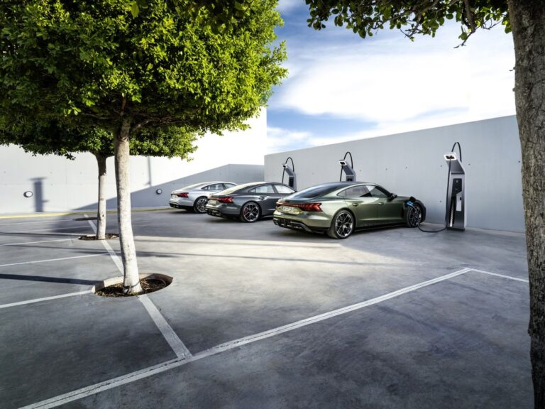 Audi zwiększyło maksymalną moc ładowania o 50 kW do 320 kW. W idealnych warunkach bateria HV rodziny e-tron GT może naładować się od 10 do 80 procent w zaledwie 18 minut na stacji ładowania HPC o dużej mocy. Już po 10 minutach bateria uzyskuje zasięg do 280 kilometrów. Wyposażony w system Plug&Charge pojazd automatycznie autoryzuje i aktywuje kompatybilne stacje ładowania po podłączeniu kabla do ładowania. Nowa bateria HV ma również znacznie szersze okno szybkiego ładowania. Nawet w niskich temperaturach samochód osiąga bardzo wysoką wydajność ładowania szybciej. Umożliwia to uzyskanie bardzo wysokiej wydajności ładowania w temperaturach tak niskich jak 15 °C, co dodatkowo redukuje zapotrzebowanie energetyczne systemu zarządzania cieplnego i ułatwia klientom korzystanie z idealnego okna szybkiego ładowania. Opcjonalnie klienci mogą również ładować się z mocą do 22 kW podczas ładowania prądem zmiennym.