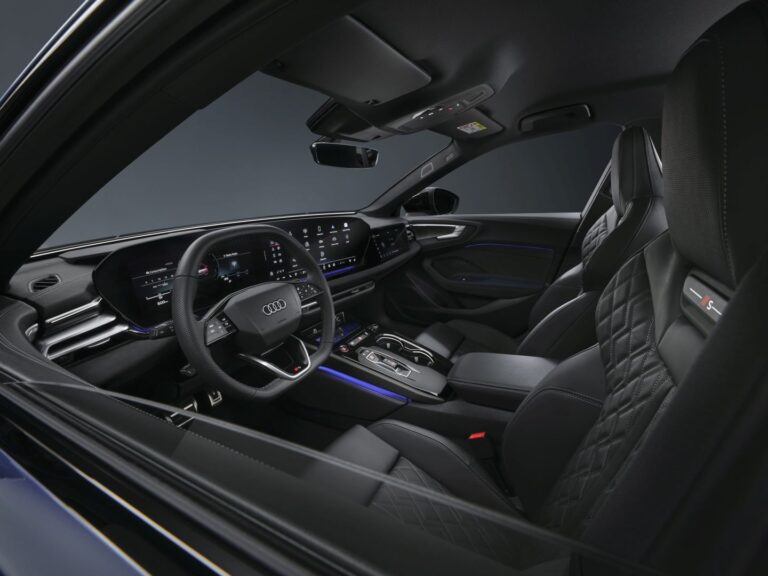 Wnętrze Audi stworzyło luksusowe wnętrze, ale bez przesady w użyciu dużej ilości skóry i włókna węglowego. Zamiast tego umieszczono zakrzywiony wyświetlacz na desce rozdzielczej, z panelem wskaźników skierowanym w stronę kierowcy, a górna część nad centralnym panelem to ekran dotykowy dla systemu MMI (infotainment Audi). Przednie fotele z wysokimi bokami były regulowane, zapewniały komfort i mogły utrzymać pasażerów na miejscu podczas szybkiego pokonywania zakrętów. Na konsoli centralnej umieszczono selektor automatycznej skrzyni biegów. Z tyłu, mimo opadającego kształtu pojazdu, Audi S5 Sedan z 2025 roku oferowało wystarczającą wysokość nad głową dla pasażerów. Jednocześnie tunel transmisyjny, który przebiegał przez pojazd od przodu do tyłu, ograniczał miejsce na nogi dla osoby siedzącej na środkowym siedzeniu.