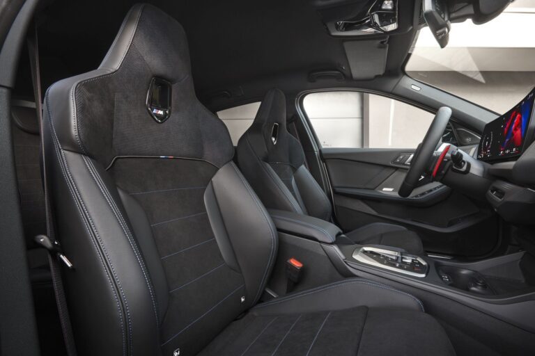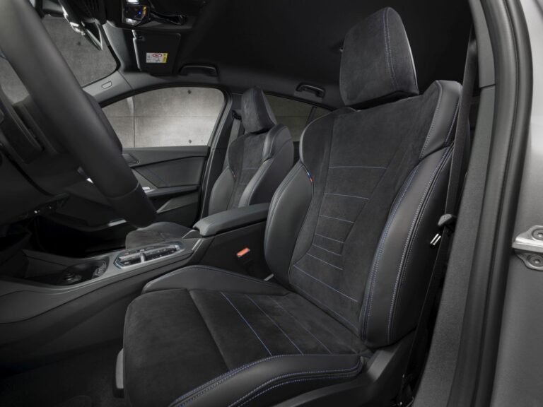 Nowo zaprojektowane wnętrze nowej serii 1 BMW, które standardowo jest całkowicie wolne od skóry, oferuje nowoczesną, premium atmosferę z sportowymi akcentami i przestronnym miejscem dla pięciu pasażerów. Nowo zaprojektowane siedzenia oferują wysoki poziom komfortu na długie podróże. Sportowe fotele w wersji Econeer z pokryciami i tapicerowaniem z recyklingowanego poliestru oraz sportowe fotele M są dostępne opcjonalnie. Otwory wentylacyjne siedzisk są również dostępne w wersji Veganza o właściwościach zbliżonych do skóry. Wyposażenie Veganza/Alcantara jest częścią pakietu M Sport oraz standardowym wyposażeniem w BMW M135 xDrive.