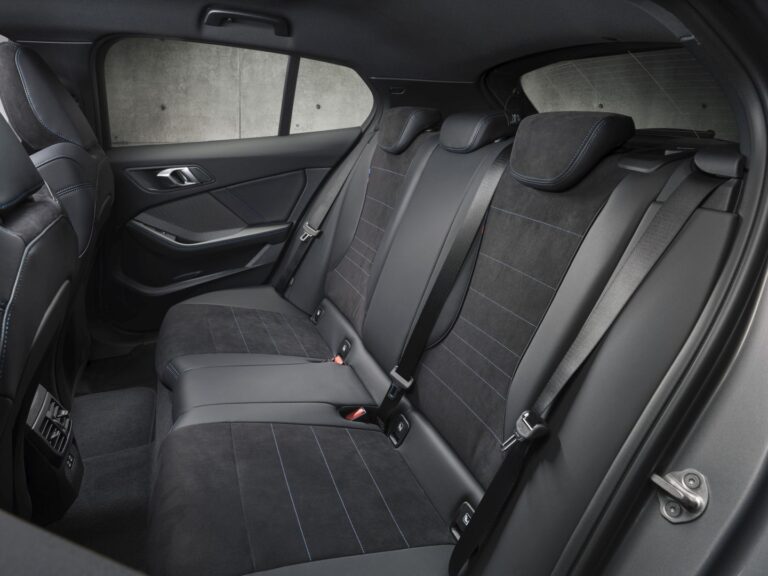 Fotele podgrzewane i szeroka gama elektrycznych regulacji, w tym pamięć po stronie kierowcy, są dostępne jako opcje dla wszystkich wersji siedzeń. Wsparcie lędźwiowe można dodać do sportowych foteli i foteli M sportowych. Opcjonalnie dostępna jest również funkcja masażu dla foteli sportowych. Poduszka powietrzna dla kierowcy i pasażera z przodu jest teraz standardowo zamontowana, aby jeszcze bardziej zwiększyć bezpieczeństwo pasażerów. Składając oparcia tylnej kanapy, przestrzeń bagażowa pod klapą może zostać zwiększona z 380 litrów do 1200 litrów (BMW 120, BMW 120d: 300 – 1135 litrów).