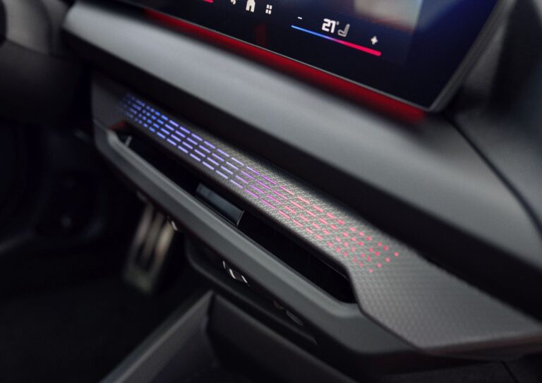 Nowo zaprojektowane wnętrze BMW Serii 2 Gran Coupé jest standardowo całkowicie wolne od skóry. Opcjonalnie dostępne wykończenie Veganza/Alcantara jest dostępne w połączeniu z ręcznie szytymi kontrastowymi szwami na desce rozdzielczej. Dynamicznie podświetlane elementy wnętrza z frezowanego aluminium również przyczyniają się do wyrafinowanego i sportowego klimatu premium. Wyświetlacz BMW Curved Display oraz nowo zaprojektowany selektor biegów podkreślają postępowy charakter wnętrza.