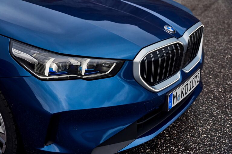 Podobnie jak w nowym BMW 5-Series Sedan, model Touring ma wyrazisty przód z nowoczesną interpretacją typowej dla BMW kratki oraz podwójnymi reflektorami. Kratka chłodnicy BMW, która wystaje daleko do przodu, ma opcjonalne podświetlenie BMW Iconic Glow. Reflektory LED mają charakterystyczną czterooką twarz marki w zredukowanej formie. Dwa niemal pionowe elementy LED umieszczone na zewnątrz zapewniają światła dzienne i kierunkowskazy. Precyzyjnie zorganizowana interakcja między reflektorami, podświetlaną kratką chłodnicy BMW oraz światłem rzucanym z progu tworzy efektywne scenariusze powitania i pożegnania.