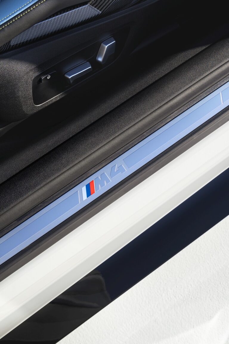 Ponadto, adaptacyjne reflektory LED są połączone zarówno wizualnie, jak i technologicznie z imponującym designem tylnych świateł LED, które są dostępne dla wszystkich nowych wersji wszystkich modeli serii BMW M4 i które wykorzystują technologię laserową oraz fascynujący design światła. We wnętrzu diody laserowe produkują jednolite oświetlenie wiązek włókna szklanego, a filigranowa, trójwymiarowa grafika świetlna uzupełnia zespoły świateł tylnych. Wersja modelowa tego innowacyjnego scenariusza świetlnego wykorzystuje technologię zaprezentowaną po raz pierwszy w limitowanej edycji specjalnego modelu wysokowydajnego BMW M4 CSL, modelu ograniczonego do 1000 sztuk.