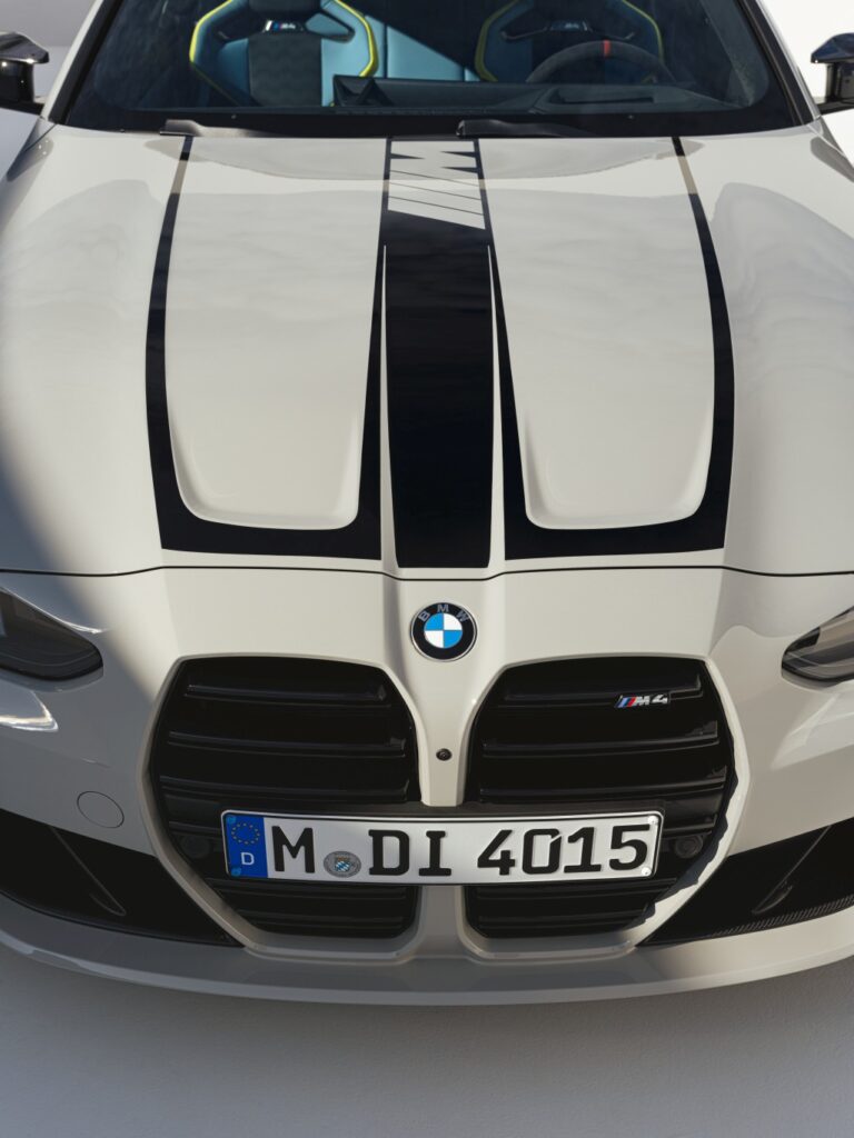 Wyjątkową cechą zaprojektowaną wyłącznie dla wariantów modelowych nowego BMW M4 Coupé do personalizacji wyglądu zewnętrznego są opcjonalne grafiki M na masce oraz tylnej pokrywie. Ten kontrastujący kolor podkreśla sportowe cechy dwudrzwiowego modelu i jest dostępny albo w High Gloss Black, albo w High Gloss Red. Opcjonalny dach ze stali, dostępny bez dodatkowych kosztów, który zawiera elektrycznie sterowany szklany dach, oferuje dodatkowy akcent designu: część dachowa z blachy jest wykończona w High Gloss Black zamiast koloru nadwozia.