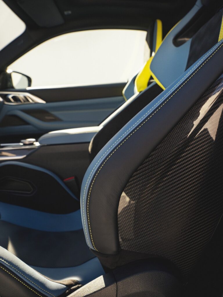 Opcjonalne w pełni elektrycznie regulowane i ogrzewane fotele M Carbon zapewniają optymalne połączenie między kierowcą a pojazdem. Łączą funkcjonalność wyścigową z lekką konstrukcją, najnowocześniejszym wykonaniem oraz wysokim poziomem komfortu podczas dłuższych tras. Użycie CRP dla strukturalnych elementów siedzenia i oparcia, a także wycięcia w obszarze bocznych podparć i pod zagłówkami skutkuje redukcją wagi o 9,6 kg w porównaniu do standardowych siedzeń sportowych.