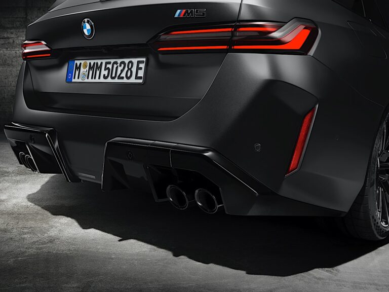 Obok spojlera dachowego, przyciągający wzrok dyfuzor w dwóch częściach pomaga optymalizować aerodynamikę pojazdu, zwiększa przyczepność i tworzy niezapomnianą aurę. Pionowy dzielnik dyfuzora odnosi się do podziału w centralnej części przedniego zderzaka, wprowadzając kolejny element designu inspirowany samochodami wyścigowymi. Ponadto znane podwójne rury wydechowe M w czarnym chromie są zintegrowane z lewą i prawą stroną tylnego zderzaka.
