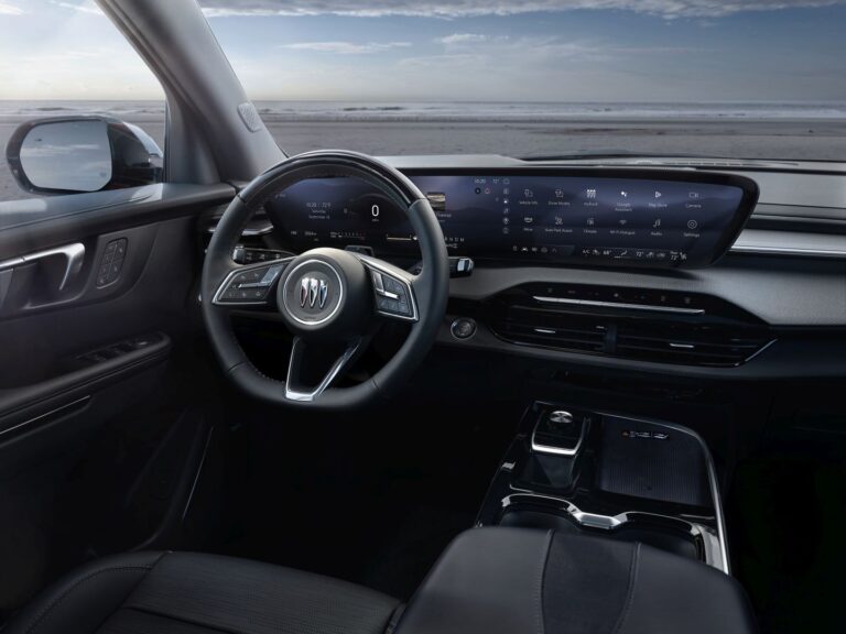 Wewnątrz producent zaskoczył swoich klientów 30-calowym zakrzywionym wyświetlaczem, który zdobił deskę rozdzielczą. Składał się z dwóch ekranów, jeden znajdował się przed kierowcą i pokazywał panel instrumentów, a drugi był umieszczony na szczycie centralnej konsoli do systemu infol entertainment. Buick zapewnił pełny zestaw z bezprzewodowym Apple CarPlay oraz Android Auto. System infotainment był zasilany przez Android Automotive od Google, co umożliwiało dostęp do natywnych aplikacji Androida oraz większości funkcji pojazdu. Korzystając z ekranu dotykowego lub Asystenta Google, kierowcy mogli odpowiadać na wiadomości, uzyskiwać wskazówki drogowe przez Google Maps, a także kontrolować wybrane funkcje. Fotele z przodu miały ogrzewanie i wentylację, a trzeci rząd dysponował funkcją składania elektrycznego.
