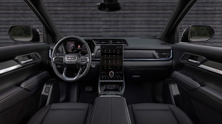 Wnętrze zostało znacznie poprawione. Zniknęły analogowe wskaźniki z deski rozdzielczej, ponieważ GMC zastąpiło je 11-calowym, konfigurowalnym wyświetlaczem. Co więcej, zmieniono również projekt deski rozdzielczej, która miała kwadratowy daszek nad panelem i przedłużenie nad centralnym panelem z dwoma kwadratowymi wentylatorami. Ogromną różnicę zrobiła nowa jednostka infotainment, która oferowała 15-calowy ekran dotykowy, tryb pionowy z wbudowanym Google, a także łączność z Apple CarPlay i Android Auto oraz hotspot Wi-Fi 5G. GMC nie poszło w ślady innych producentów, rezygnując z fizycznych przycisków i umieszczając je na dolnej części głównego wyświetlacza. Ponadto okrągły pokrętło głośności zostało elegancko zintegrowane w dolnej części ekranu. Przednie fotele były oddzielone wysokim środkowym konsolą, która miała podłokietnik z wbudowanym bezprzewodowym ładowaniem oraz dużą przestrzenią do przechowywania. Z tyłu, kanapa dzielona w proporcjach 60/40 zwiększała przestrzeń bagażową, a dzięki płaskiemu składanemu fotelowi pasażera z przodu, GMC Terrain 2025 mógł pomieścić przedmioty o długości do 8 stóp (2,4 metra).