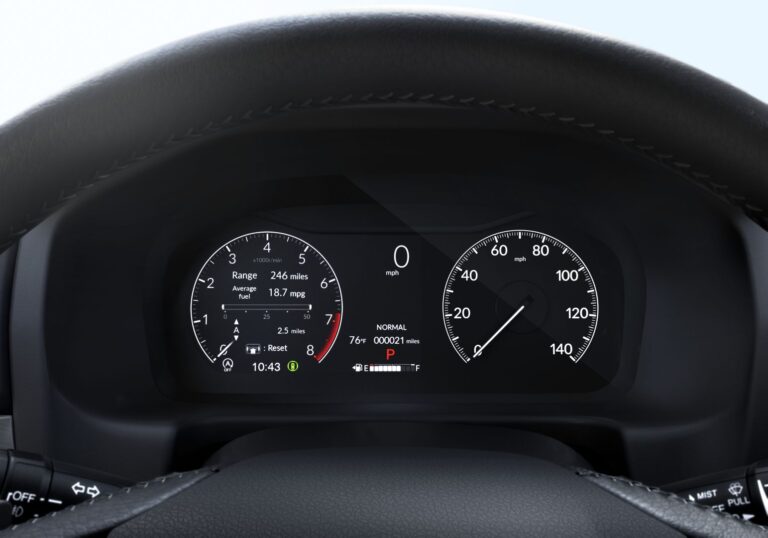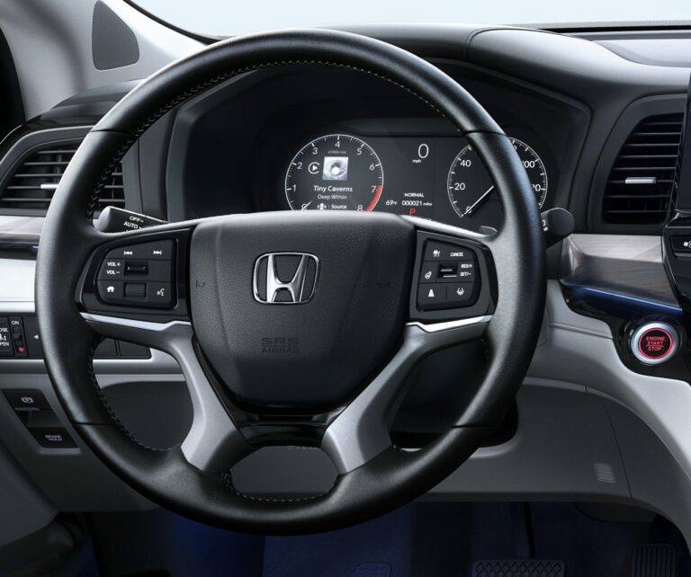 Wewnątrz, Odyssey może pochwalić się znacznymi aktualizacjami technologicznymi, które obejmują szereg nowych standardowych funkcji. Bardziej zaawansowana technologia została sprytnie zintegrowana w celu poprawy doświadczenia wnętrza Odyssey. Nowy 7-calowy cyfrowy wyświetlacz instrumentów jest teraz standardem, z cyfrowym obrotomierzem po lewej stronie i analogowym prędkościomierzem po prawej. Wyświetlacz zawiera również funkcje wybierane przez użytkownika, takie jak ustawienia Honda Sensing®, informacje o pojeździe i inne.
