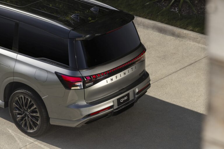 „Nowy QX80 jest pierwszym modelem produkcyjnym, który powstał w ramach naszej ewoluowanej mowy projektowej, Artistry in Motion,” powiedział Alfonso Albaisa, wiceprezydent ds. globalnego designu. „Na zewnątrz pozostaliśmy wierni prowokacyjnemu wizji, którą ustanowiliśmy z QX Monograph, a we wnętrzu płynnie zintegrowaliśmy technologię wśród najwyższej jakości materiałów, aby dostarczyć wrażenie niezwykłego rzemiosła dla wszystkich trzech rzędów.”