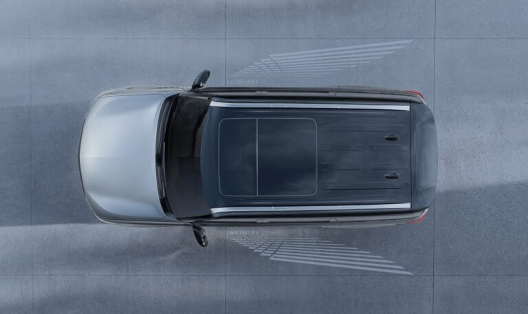 Nawiązując do japońskiej zasady przemyślanej gościnności, nowy Infiniti QX80 oferuje dramatyczną sekwencję powitania, która obejmuje aktywację dostępnej drogi świetlnej Infiniti Light Path. Po zbliżeniu się do pojazdu z kluczykiem, chowane klamki drzwi automatycznie wysuwają się, aby powitać pasażerów. Po odblokowaniu pojazdu następuje oszałamiający pokaz świetlny: emblemat Infiniti świeci, a następnie indywidualne elementy w światełkach do jazdy dziennej, zaczynając od środka pojazdu i kierując się na zewnątrz. Kończy się to na drodze świetlnej Infiniti Light Path, oszałamiającej projekcji na ziemi z logo Infiniti i geometrycznymi kształtami przypominającymi skrzydła.