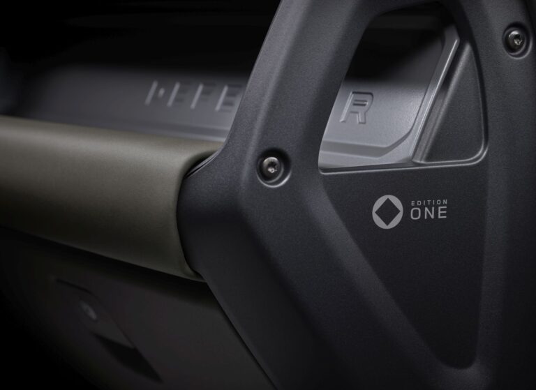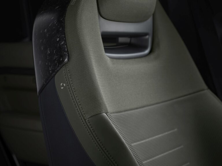 Faroe Green jest dostępny wyłącznie w Defender OCTA Edition One, podobnie jak detale z wytłaczanego węgla węglowego. To wysoce charakterystyczne wykończenie, które wykorzystuje recyklingowane materiały, znajduje się na napisie na masce Defendara, otokach wentylacji błotników oraz otokach wentylacyjnych maski, a także na tylnych oparciach foteli i wykończeniu konsoli centralnej wewnątrz.