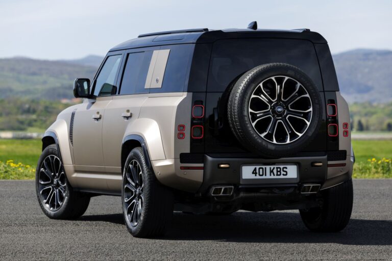 Z profilu, ogromny pojazd ujawniał swój autentyczny terenowy styl z kształtem przypominającym oryginalnego Defendara 110. Land Rover oferował model 2025 Defender OCTA z wyborem dwóch typów kół. Jedne z 22-calowymi felgami, obutymi w opony całoroczne, a drugie z unikalnymi 20-calowymi kołami, obutymi w opony terenowe. Te drugie miały także wyższą prześwit, jakby były gotowe na trudny szlak, prosto z salonu. Z tyłu, płaska, pionowa klapa bagażnika mieściła pełnowymiarowe koło zapasowe. Land Rover nie zamontował kroków bocznych, ponieważ ograniczałyby one prześwit oraz kąt podejścia. W konfiguracji terenowej model 2025 Defender OCTA mógł poszczycić się kątem podejścia wynoszącym 40 stopni, kątem zejścia 42 stopnie i kątem rampy przełamania 38 stopni. Dodatkowo, Land Rover obiecał niesamowitą głębokość brodzenia wynoszącą 39 cali (990 mm).