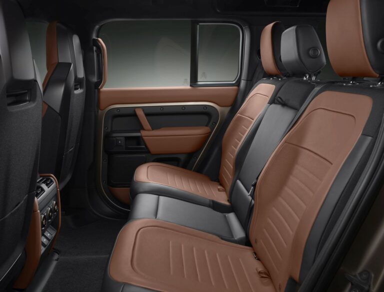 Wewnątrz, starannie wybrane elementy odróżniają Nowego Defendara OCTA. Oferowane są dwie niezwykle trwałe opcje UltrafabricsTM PU – o 30% lżejsze niż tradycyjna skóra. To wykończenie siedzeń jest standardem w Defenderze OCTA Edition One, w dwu-tonowym Khaki i Ebony, z dzianinowym tekstylnym wykończeniem i redukcyjną, bezszwową jakością.