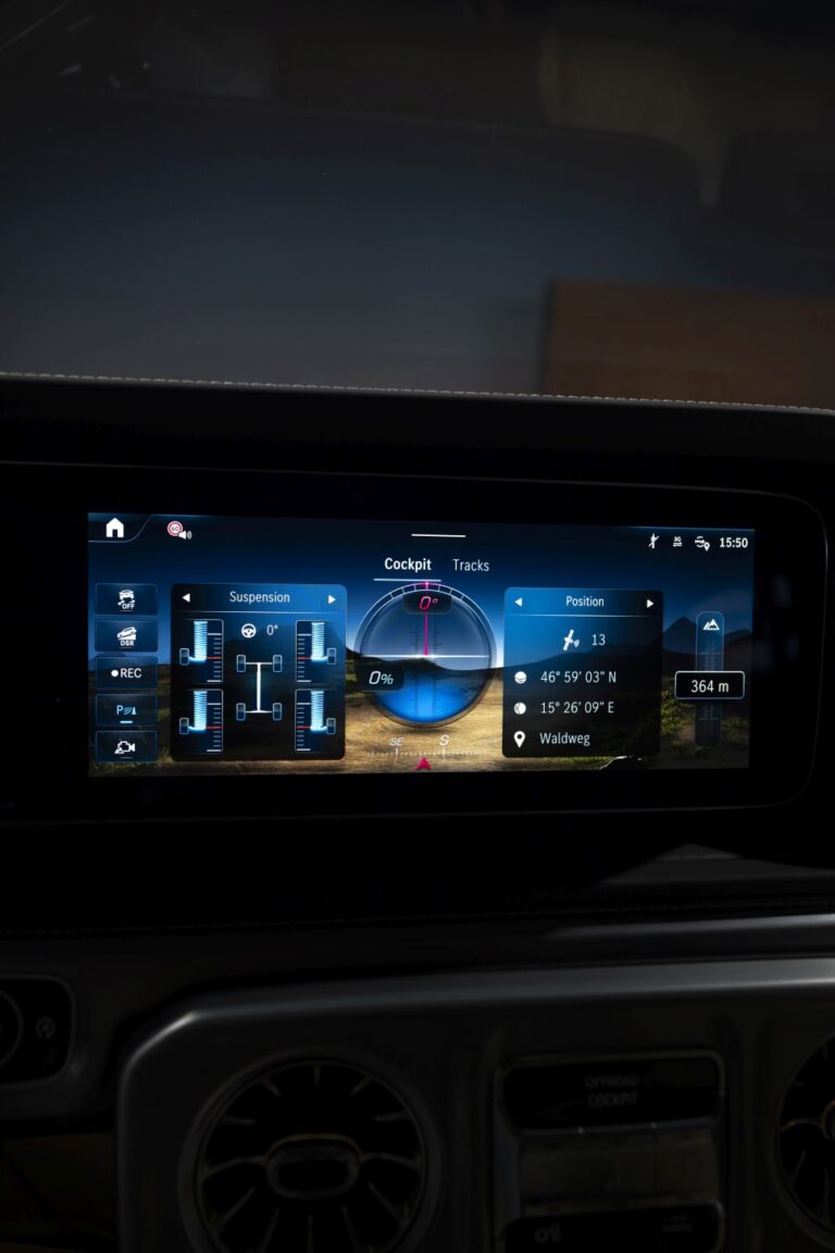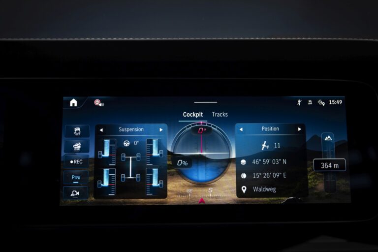 Zawieszenie AMG ACTIVE RIDE CONTROL poprawia również artykulację kół. Umożliwia to kołom utrzymanie kontaktu z nawierzchnią nawet przy dużych odchyleniach pojazdu. Prowadzi to do znacznego zwiększenia przyczepności, zdolności do wspinania się i komfortu w terenie, a także do zmniejszenia obciążenia zarówno pojazdu, jak i kierowcy.