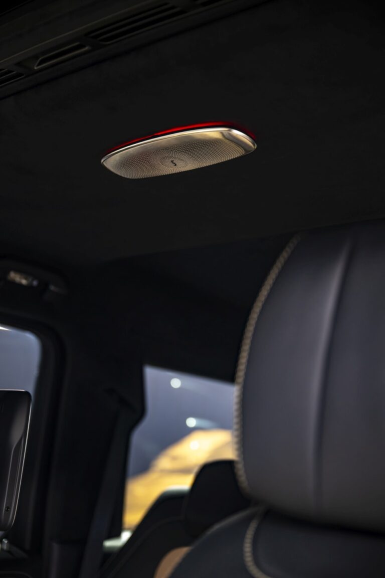 Wewnątrz i na zewnątrz, niezaprzeczalne elementy designu nadają całkowicie nowemu Mercedes-AMG G63 jego unikalny wygląd. Lakier zewnętrzny MANUFAKTUR Hyper Blue Magno jest dostępny wyłącznie dla najwyższego modelu G-Class. Przód wyróżnia nowy, dedykowany dla AMG zderzak z trzema pionowymi żaluzjami przed wlotami powietrza oraz stalowe wstawki. Standardowe adaptacyjne reflektory MULTIBEAM LED oświetlają drogę w zależności od sytuacji jazdy z 84 indywidualnie sterowanymi diodami LED o wysokiej wydajności. Lampy tylne również wyposażone są w technologię LED.