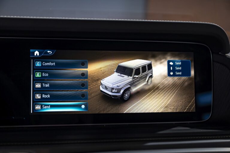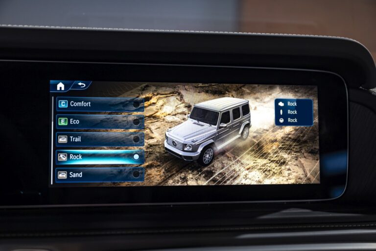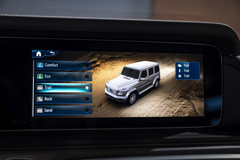 Dzięki pięciu programom AMG DYNAMIC SELECT do jazdy po drodze – „Slippery,” „Comfort,” „Sport,” „Sport+” oraz „Individual,” doświadczenia z jazdy obejmują od efektywnej i komfortowej po bardzo sportową. Parametry, takie jak reakcja silnika, skrzyni biegów, zawieszenia i kierownicy są specjalnie dostosowane do każdego programu jazdy. Trzy etapy adaptacyjnego tłumienia, „Comfort,” „Sport” i „Sport+,” mogą być również wybierane niezależnie. Dostępne są również trzy programy jazdy terenowej: „Sand,” „Trail” i „Rock.”