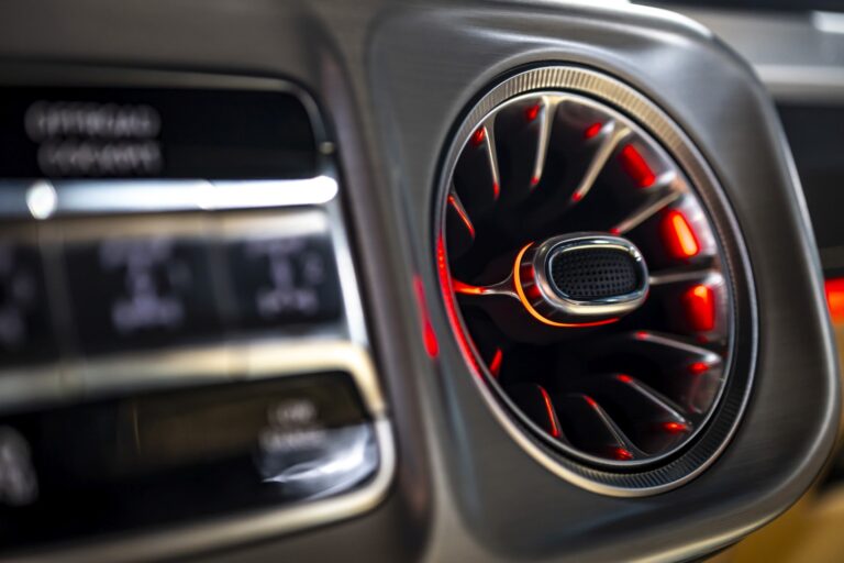 Na przedzie, Mercedes-AMG G63 z 2024 roku zaskoczył swoich klientów przeprojektowanym przodem. Choć nie była to radykalna zmiana, ani jeden z jego poprzedników również nie poddano drastycznym modyfikacjom. Kratka chłodnicy miała pionowe żaluzje, a nie cztery poziome. Dodatkowo, dolna część zderzaka została wyposażona w przeprojektowane wloty powietrza, które miały trzy małe pionowe żaluzje wewnątrz. Z drugiej strony, lampy sygnalizacyjne wciąż były zamocowane na górze przednich błotników.